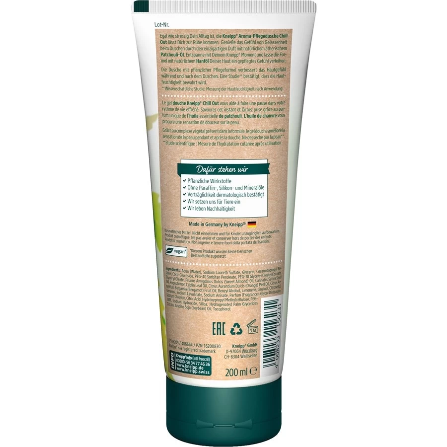 Étiquetage produit: sans pigment ni colorant, sans gluten, sans sulfate, sans lactose, sans alcool, sans ammoniaque, sans phtalates, sans parabènes, sans acétone, sans microplastiques, convient aux peaux sensibles, sans silicone, sans paraffine